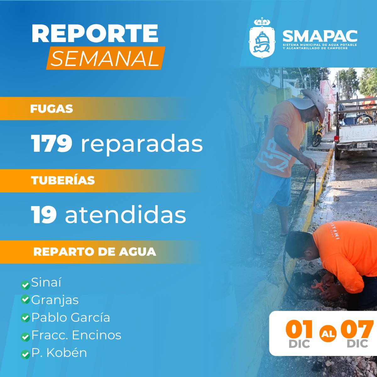 Personal del SMAPAC, realiza reparación de tubería por fuga de agua, en la Av. Eduardo Mena por Alberto Trueba de la U.H. Cd. Concordia📍.